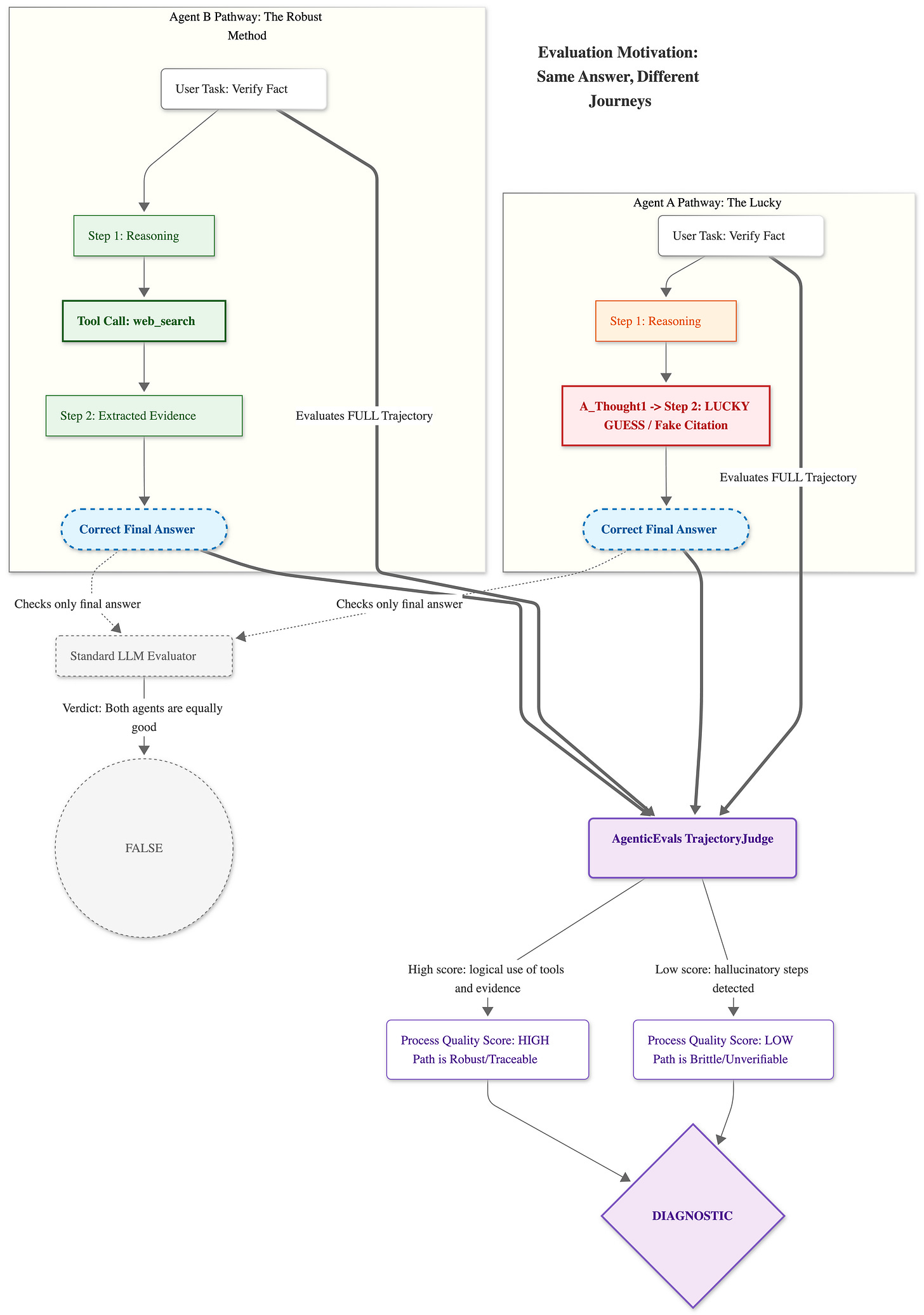 The fix is to evaluate trajectories, not answers. You can see the diagram below to get a better intuition of this problem.